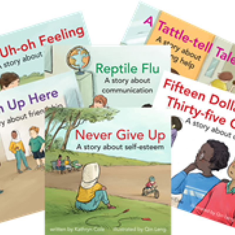 Includes all 6 books: Never Give Up: A story about self-esteem; Reptile Flu: A story about communication; Sign Up Here: A story about friendship; A Tattle-tell Tale: A story about getting help; Fifteen Dollars and Thirty-five Cents: A story about choices; and, That Uh-oh Feeling: A story about touch.